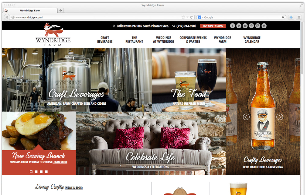 Wyndridge Farm first required an overall identity for the farm and then for its first product – a hard apple cider. Wyndridge is also a destination for cider/craft brew/wine/food lovers, while also hosting events and weddings for those looking for a historic, elegant farm backdrop.