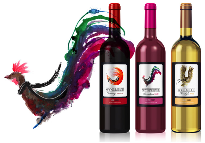 In creating the wine labels, the look needed to have a slightly different feel, but still tie into the Wyndridge brand. We chose farm animals, but put the Wyndridge scarf on them. The illustrations were done in a more artistic style and thus look more like wine.